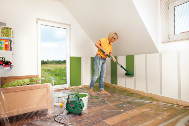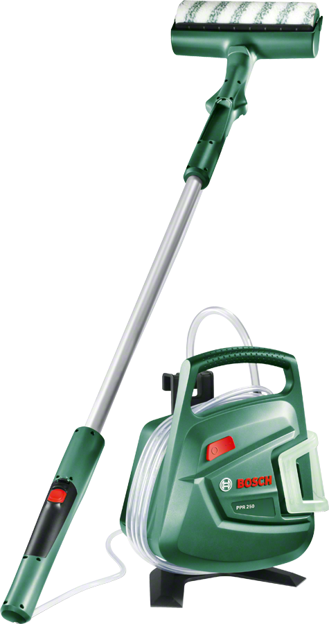 Краскопульт BOSCH PPR 250 предназначен для покраски больших поверхностей, таких как потолки и стены. Количество подаваемой на валик краски пользователь может контролировать с высокой точностью дистанционно посредством технологии PaintControl: всегда подается ровно такой объем краски, который необходим. После завершения работы система быстро опорожняется и очищается благодаря технологии EasyClean. Для этого все краскоподающие детали снимаются без инструмента и промываются. Краска может подаваться из любой емкости с краской.