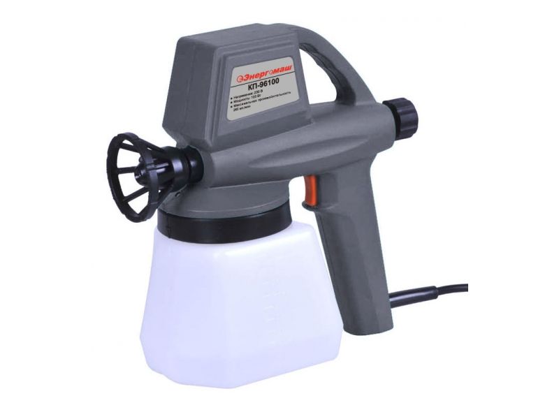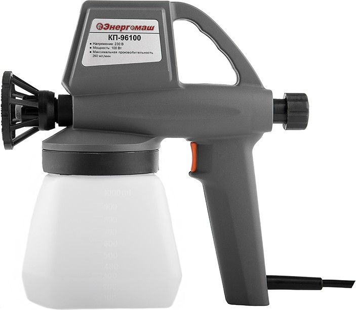 Краскопульт ЭНЕРГОМАШ КП-96100 предназначен для внутренних и наружных окрасочных работ, он прекрасно работает с быстросохнущими красками на водяной основе, с лаками и полировками. Конструкция краскопульта обеспечивает равномерное распределение жидкости по поверхности. Специальный регулировочный винт на внешней стороне ручки инструмента позволяет регулировать объем жидкости, подаваемой в сопло, до 260мл/мин.