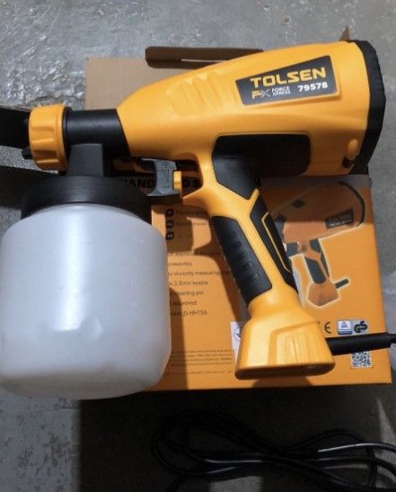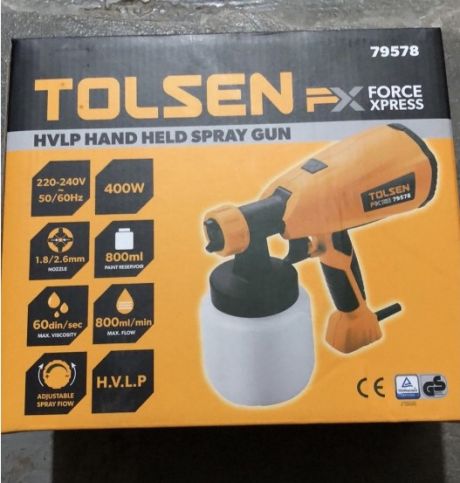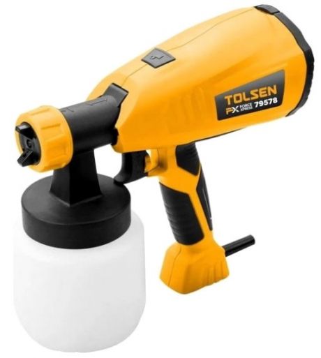 Фарбопульт Tolsen Т-400 (79578) – це практичний та функціональний інструмент, який призначений для використання у побутових умовах. Живлення моделі проводиться від мережі напругою 220 В. Конструкцією передбачено бачок під фарбу з нижньою подачею.