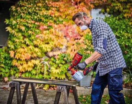 Краскопульт аккумуляторный Einhell TC-SY 18/60 Li - Solo серии Classic линейки Power X-Change system представляет собой ручную систему распыления краски для покраски небольших и средних помещений и адаптирован для использования эмалей, глазурей, грунтовок, бесцветных лаков, защитных автомобилей. красителей и средств защиты дерева. Регулятор расхода краски и регулируемое сопло для вертикальной, горизонтальной и круглой струи позволяют адаптировать краскопульты к разным задачам, позволяя аккуратно и точно выполнять покрасочные работы.