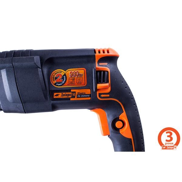 Наличие двух сменных патронов значительно расширяет функциональные возможности модели: вам больше не придется использовать несколько инструментов, так как перфоратор Дніпро-М ПЕ-2698ПС универсален и подходит для широкого спектра задач.