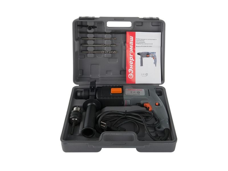 Перфоратор ЭНЕРГОМАШ ПЕ-25501 имеет мощный двигатель в 600 Вт с числом оборотов 850 в минуту, относится к бытовому классу. Инструмент предназначен для работ с такими материалами, как сталь, пластмасса, дерево, бетон. Наделен двумя режимами работы сверление с ударом и сверление. Удобный курок выключателя с колесиком, регулирующим скорость частоты вращения для оптимального выполнения различных работ. Перфоратор оснащен дополнительной рукояткой, которая может вращаться в диапазоне 360° вокруг оси патрона и фиксироваться в удобном для оператора положении.