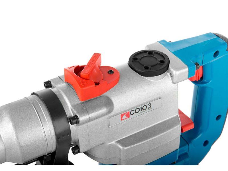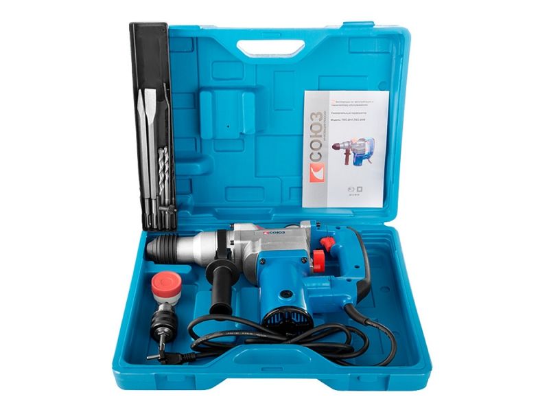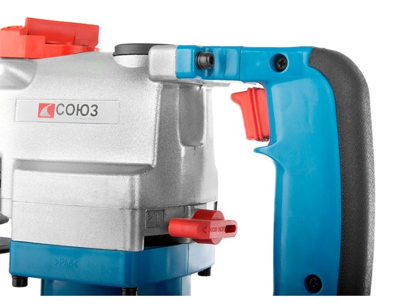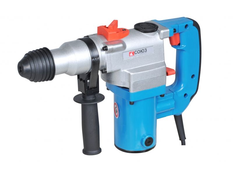 Перфоратор СОЮЗ ПЕС-2595 используется для сверления отверстий в бетоне, кирпиче, дереве, металле и т.д. Перфоратор оснащен двигателем мощностью 950 Вт, который позволяет осуществлять до 3000 ударов в минуту. Защита двигателя от перегрузки значительно повышает срок службы инструмента. Возможна робота в трех режимах: сверление, сверление с ударом и долбление. Имеется регулятор количества оборотов для работы с разными материалами. Блокировка кнопки включения обеспечивает удобство при длительных и непрерывных работах. Антивибрационная основная рукоятка уменьшает нагрузку на руки во время работы.