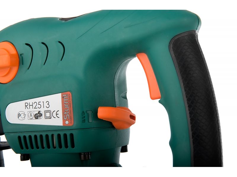 Перфоратор STURM RH2513 - это оптимальный вариант, если Вам нужен многофункциональный инструмент. Изделие имеет три режима работы – сверление, сверление с ударом, долбление. Для комфортной работы модель оснащена дополнительной рукояткой, которая вращается в диапазоне 360 градусов вокруг оси патрона и фиксируется в любом удобном оператору положении. Перфоратор оснащен системой SDS-plus для быстрой и удобной смены бура. Инструмент поставляется с ограничителем глубины. Данная модель применяется для выполнения отверстий в металле, древесине, бетоне, камне, кирпиче. Также ей можно выдалбливать канавки для электропроводки, водопровода и канализации, а также разрушать строительные материалы.