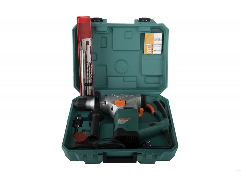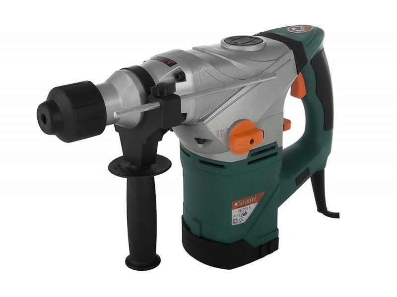 Перфоратор STURM RH2518 - удачный выбор для бытового и профессионального использования. Мощность двигателя 1850 Вт позволяет эффективно справляться с любыми нагрузками. Изделие имеет три режима работы – сверление, сверление с ударом, долбление. Для комфортной работы модель оснащена дополнительной рукояткой, которая вращается в диапазоне 360 градусов вокруг оси патрона и фиксируется в любом удобном оператору положении. Перфоратор оснащен системой SDS-plus для быстрой и удобной смены бура. Инструмент поставляется с ограничителем глубины. Ручка перфоратора оснащена антивибрационной системой, что увеличивает комфорт во время работы. Данная модель применима для выполнения отверстий в металле, древесине, бетоне, камне, кирпиче.