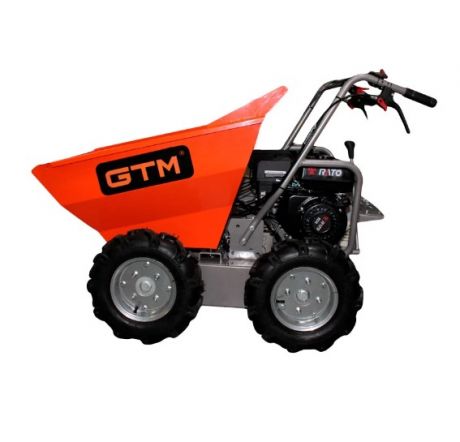 Візок будівельний думпер GTM T30 (39296) працює від бензинового двигуна Rato R210 потужністю 6 л.с і переміщається за допомогою 4 пневматичних коліс. Це бензиновий міні-транспортер з максимальною вантажопідйомністю 300 кг, призначений для виконання завдань пов'язаних із транспортуванням землі, гравію, каміння, сміття та багатьох інших різних матеріалів та вантажів. Це робить його ідеальним помічником на будь-якому будівельному майданчику, у лісовому та сільському господарстві, а також для озеленення.