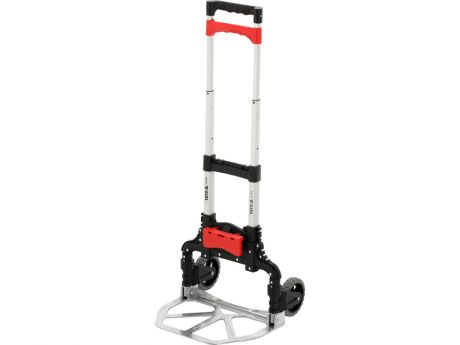 Легкий, зручний складаний візок для зберігання для легкого транспортування речей вагою до 60 кг. У складеному вигляді він займає мало місця, що дозволяє легко тримати його в порядку. Колеса з пластику TPR не пошкоджують поверхню, по якій пересувається візок. Платформа візка виготовлена з алюмінію, що робить її легкою та міцною. Висувна ручка має напрямні для полегшення розміщення фіксуючих гумок, щоб вони не з'їжджали. Для стабілізації ящиків, що перевозяться, на напрямних ручок розміщено фіксуючий пристрій. Запірний пристрій можна адаптувати до ящиків різної висоти. Рукоятка оснащена зручною пластиковою накладкою. У комплект входять фіксуючі гумки.